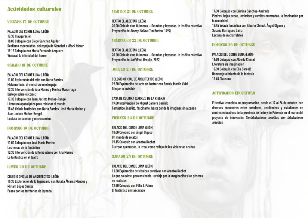 Esta edición profundizará en algunas líneas temáticas específicas como hilo conductor, destacando distintas estéticas de lo insólito como los mitos, las leyendas, lo fantástico, el terror, lo inquietante, lo onírico, lo especulativo y la ciencia ficción. Como novedad, a la narrativa se sumará la atención al cómic y al teatro, sin olvidar la relevancia de la cultura audiovisual y, de modo especial, del cine.